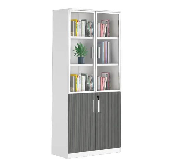 الأرفف: مزود بعدة رفوف داخلية توفر مساحة واسعة لترتيب الملفات والمجلدات والمقتنيات المكتبية.