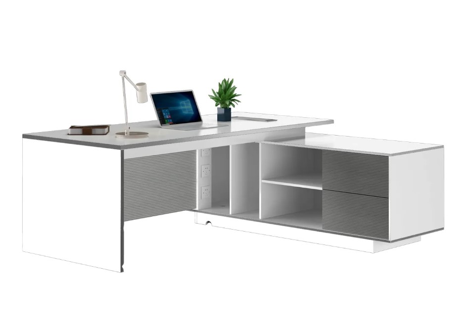 كما يمكن دمجه بسهولة مع قطع أثاث أخرى من نفس المجموعة، مثل الأدراج الجانبية أو وحدات التخزين، ليشكل طقمًا متكاملًا يضفي لمسة احترافية على المكتب بالكامل.