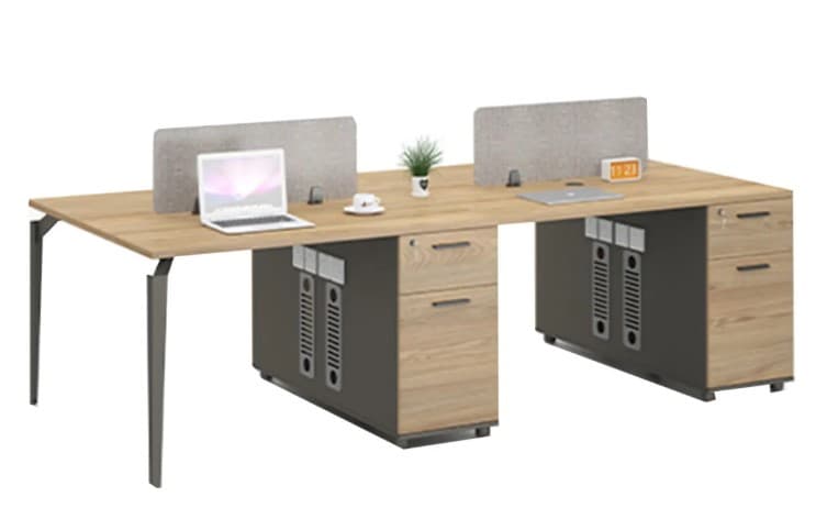 مع وجود فرق مختلفة وطبيعة عمل مشتركة و مختلفة ، فإن لأماكن العمل الحديثة متطلبات فريدة لبيئات العمل. اختار بقاطع مكتبي تمديد ذات شخصين بجهات متقابلة بلونة البيج الأنيق الذي سيجعل مكان العمل رائع و جميل. يمتاز هذا المكتب وجود ادارج لتخزين الاغراض. و ان المكتب ذو ثبات عالى. تم صناعة المكتب من خشب الملامين العالي الجودة.