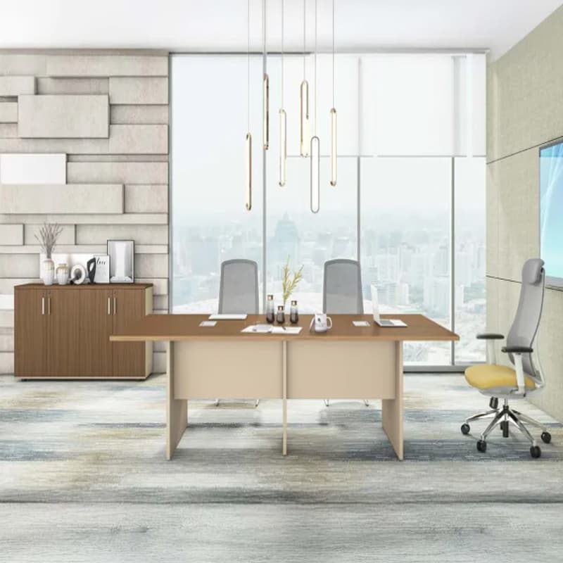 تعتبر طاولة اجتماعات كبيرة هذه الخيار المثالي لتلبية احتياجات فرق العمل والاجتماعات الرسمية، حيث تجمع بين التصميم العملي والتشطيبات المتقنة التي تضفي لمسة من الاحترافية على أي مساحة عمل. كما أن المتانة والجودة العالية للمواد المستخدمة تجعلها استثمارًا ذكيًا وطويل الأمد.