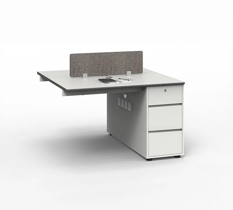 تحتوي القواطع أيضًا على أدراج جانبية لحفظ المقتنيات والأغراض الشخصية، مما يعزز ترتيب المكتب وسهولة الوصول إلى الأدوات المهمة. هذا التصميم يجعل المكتب أكثر جاذبية للموظفين والعملاء على حد سواء.