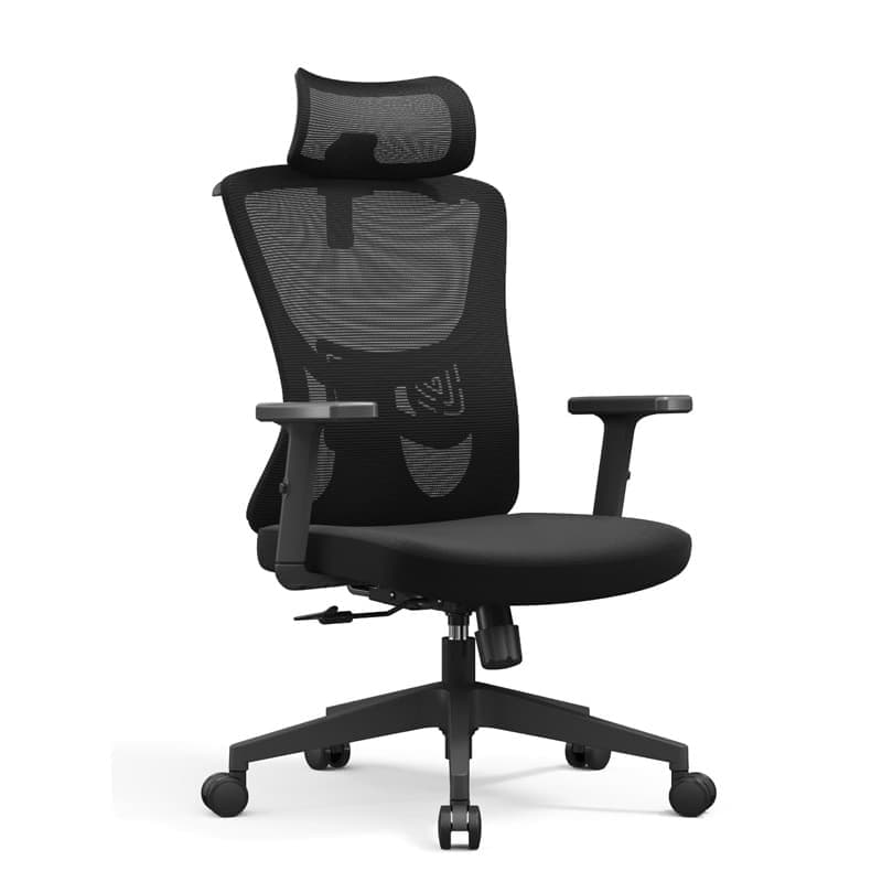 استمتع بأقصى درجات الراحة أثناء العمل مع كرسي مكتب مريح للظهر، الظهر العالي المزود بمسند رأس لتوفير دعم مثالي للرقبة والظهر. يتميز بظهر شبك يسمح بتهوية ممتازة ويقلل الشعور بالحرارة، مع جلسة مريحة من القماش مناسبة للاستخدام اليومي الطويل. الكرسي مزود بمساند أيدي ثابتة مصنوعة من البروبلين المتين، وقاعدة قوية من النايلون الأسود ترتكز على خمس عجلات لتوفير ثبات ممتاز وسهولة حركة. تصميم أنيق باللون الأسود يناسب جميع المكاتب والمساحات العملية.