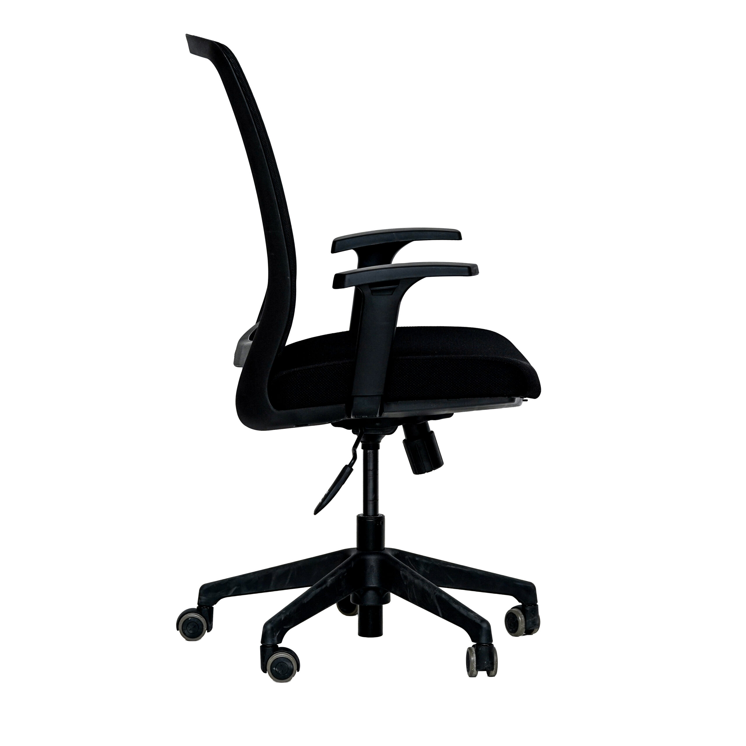 ✨ المميزاتظهر شبكي يساعد على التهوية ويقلل من التعرق. مقعد مريح مبطن مناسب للجلسات الطويلة. مساند ذراعين ثابتة لراحة إضافية. ارتفاع قابل للتعديل بواسطة ذراع جانبي. قاعدة معدنية قوية مع عجلات مرنة للحركة في جميع الاتجاهات. 🛠️ الموادالظهر: شبكة عالية الجودة. المقعد: إسفنج عالي الكثافة مغطى بالقماش. القاعدة: معدن متين مع عجلات بلاستيكية قوية. |